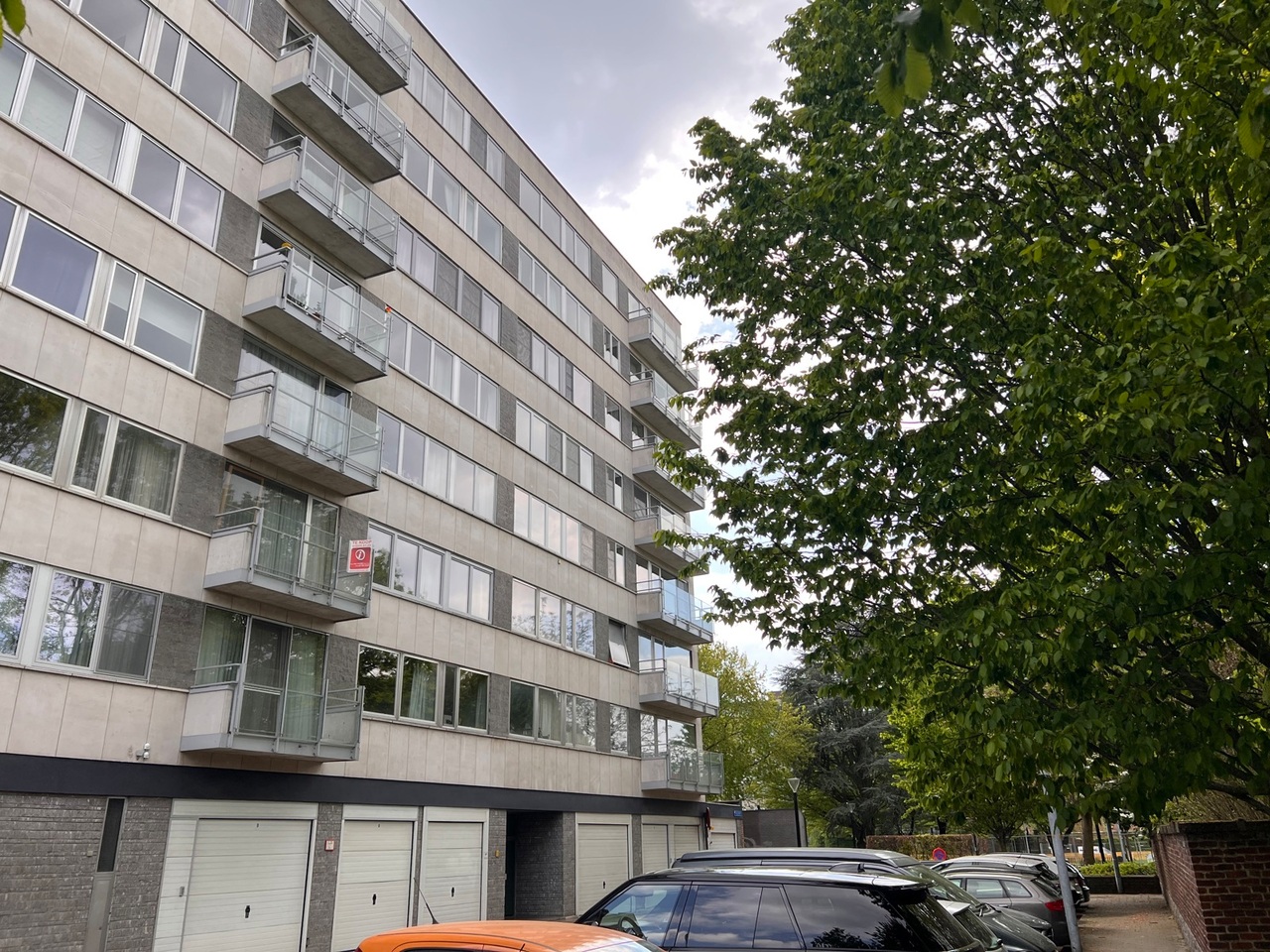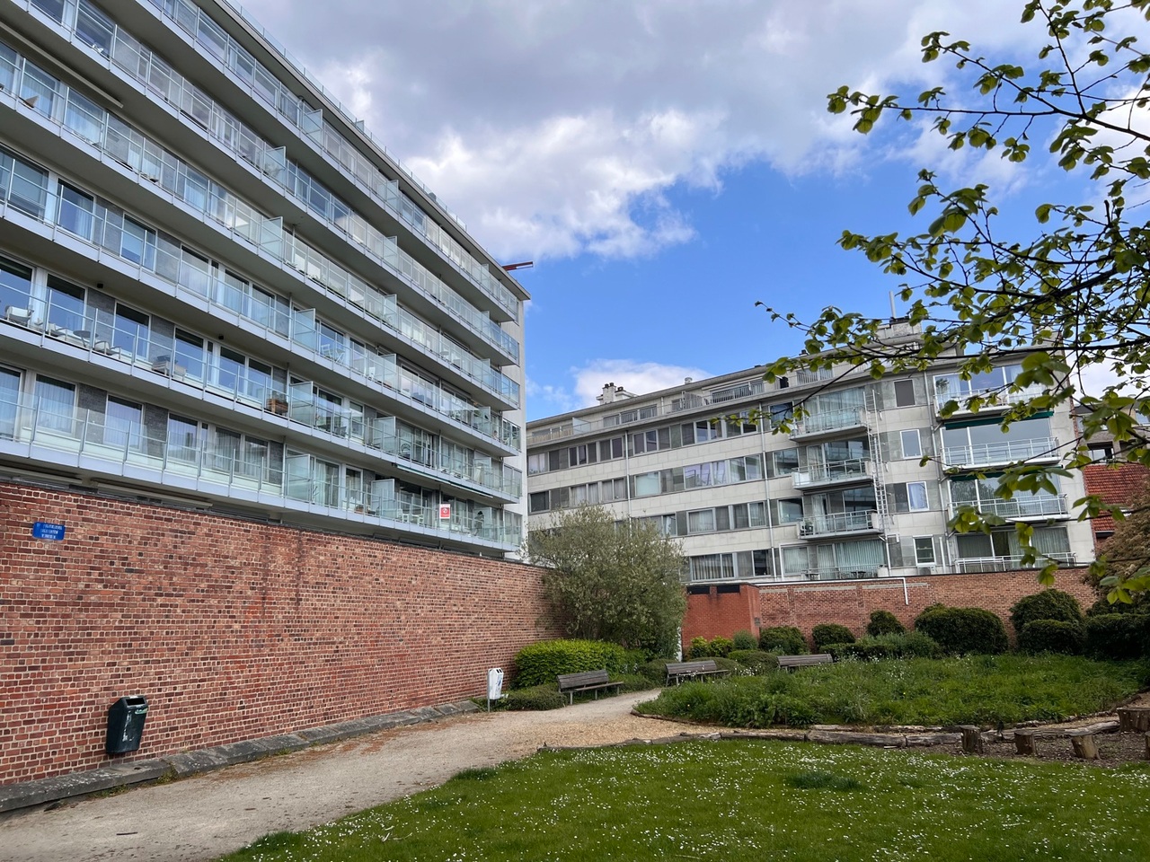 Het appartement van +/- 130 m² heeft een ruime inkomhal, een royale leefruimte (met parket) met groot zonneterras met zicht op het Bruul Park. Aansluitend is er een aparte keuken en een berging.