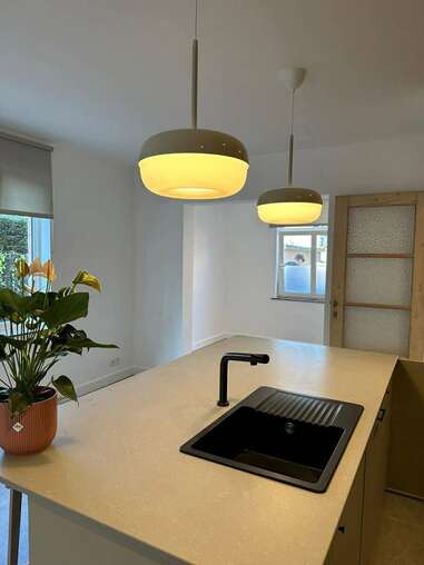 Bij het betreden van de woning word je verwelkomd in een lichtrijke en sfeervolle leefruimte. Aansluitend bevindt zich de moderne, recent vernieuwde keuken, uitgerust met een gezellige aperitieftoog – ideaal voor wie graag gasten ontvangt. Verder is er een praktische wasplaats aanwezig. Op de verdiepingen vind je twee ruime slaapkamers en een stijlvolle, vernieuwde badkamer met alle comfort. De zolderverdieping biedt bovendien de mogelijkheid tot het creëren van een extra slaapkamer, bureau of hobbyruimte.