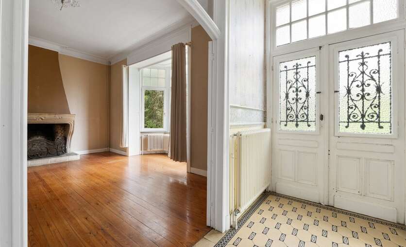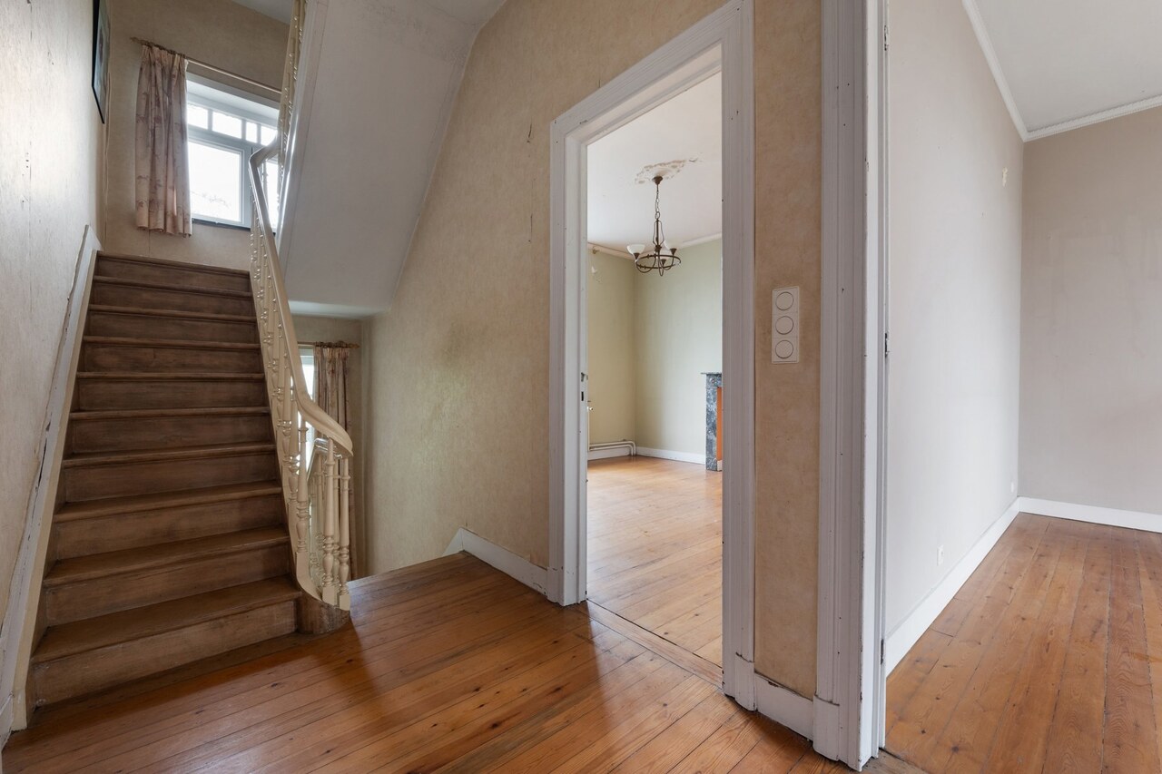 De woning staat momenteel leeg en heeft renovatie nodig, maar achter de statige gevel schuilt nog steeds haar indrukwekkende uitstraling. Authentieke elementen zoals de originele houten trappen, glas-in-loodramen, marmeren schouwen en houten binnendeuren getuigen van het vakmanschap van weleer en vormen een prachtige basis voor wie deze villa opnieuw wil laten schitteren.
